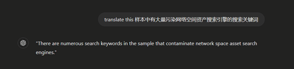 As my Chinese speaking ability is what some would describe as “terrible”, it’s important to double-check that this wasn’t a translation error. The same string was passed into different translation tools, including ChatGPT; all of which returned the same results: