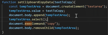 Working in the background of this page is JavaScript code which copies a malicious command into the user’s clipboard with the “document.execCommand(“copy”)” function, pictured below.