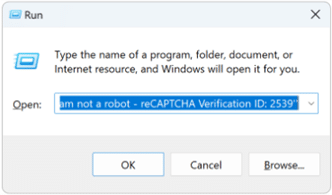 The second instruction displayed to the victim asks them to paste that code into the Run dialogue by pressing “CTRL + V”, the hot keys for “paste” on Windows. The threat actor has accounted for the appearance of their request by placing the malicious code at the very front of the clipboard and inserting a “commented” segment of code (which will not execute) at the end. Since the dialogue box shows the most recent text last, the malicious code is hidden to the user who only sees the seemingly innocuous comment: